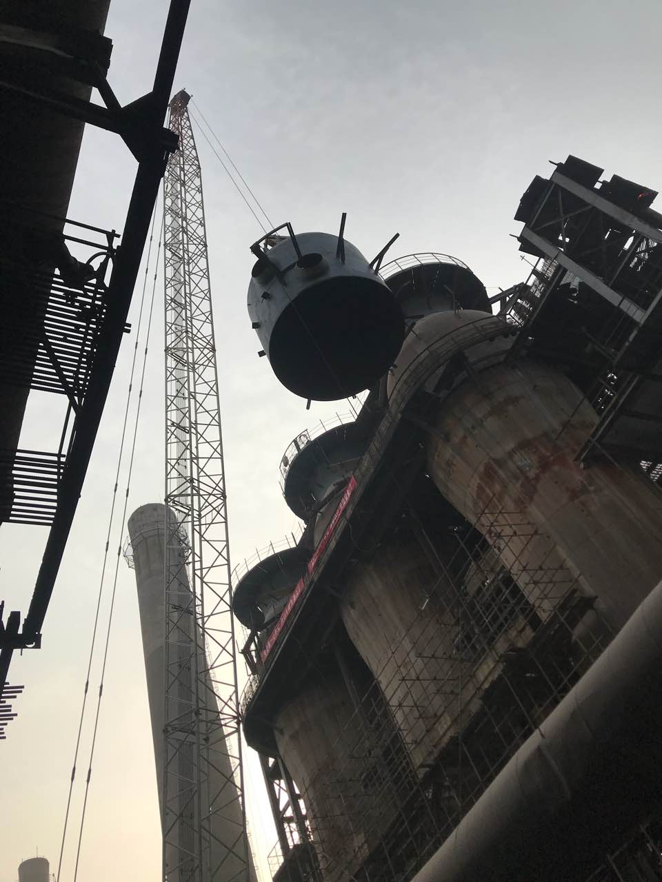 安阳沙钢永兴3#、4#580立方米高炉热风炉大修工程于11月15日正式开工,到今天共计14天的时间,先后完成了老热风炉系统的拆除及热风炉新建,完成耐材拆50%,钢结构拆除完成,设备拆除完成,自动化系统拆除完成,新建炉壳已封顶两座。